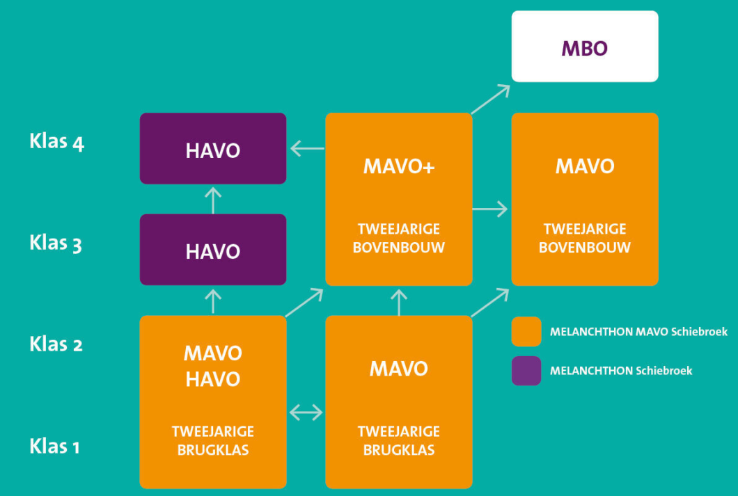 Op het doorstroomschema ziet u de onderwijsvormen die wij bieden en op welke wijze leerlingen kunnen doorstromen.