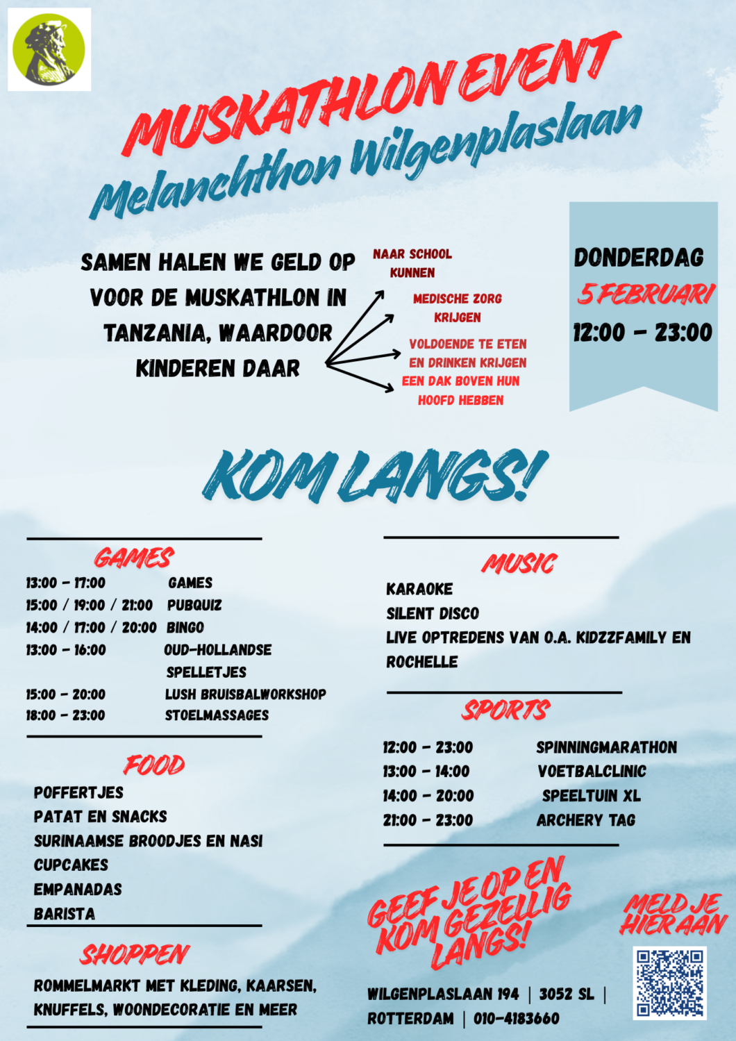 Op donderdag 5 februari is het Muskathlon event op onze school: